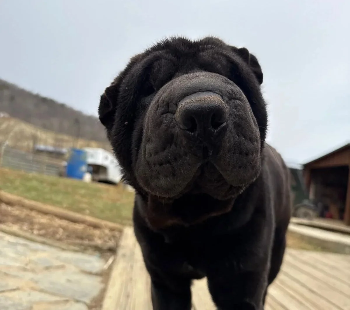 Though he’s visually impaired, he navigates the farm with impressive confidence. He thrives on human connection and is happiest when he's near his people. Like most Shar-Peis, Rupert does need ongoing skin care, but he’s worth every bit of it.